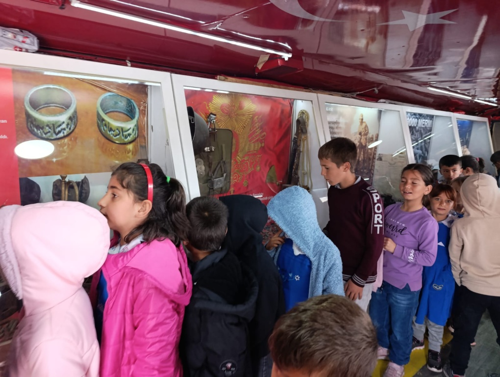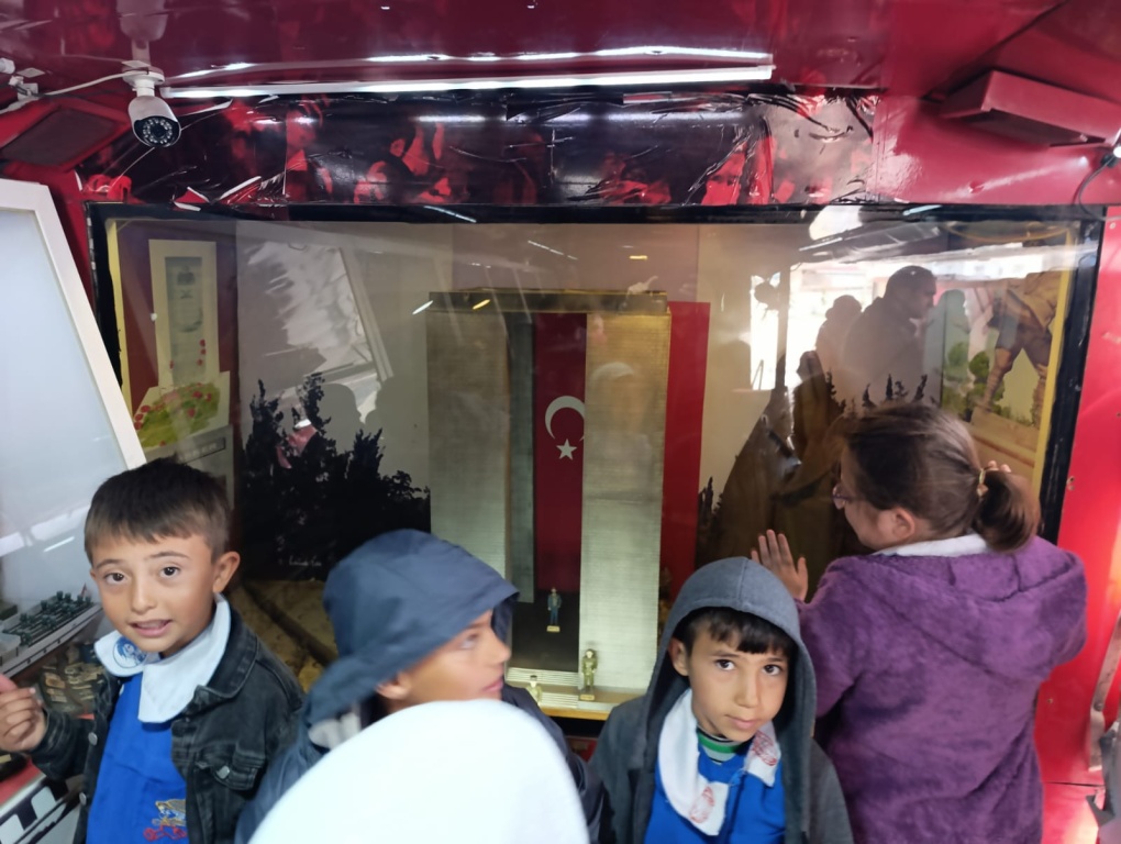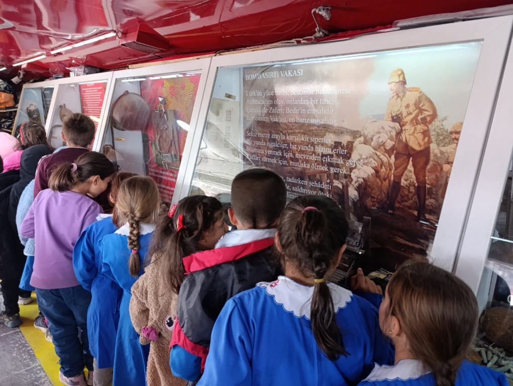 Çanakkale otobüsünün okulumuz ziyaretinde öğrencilerimiz tarihimizi görsellerle öğrenme fırsatı buldular.